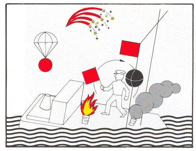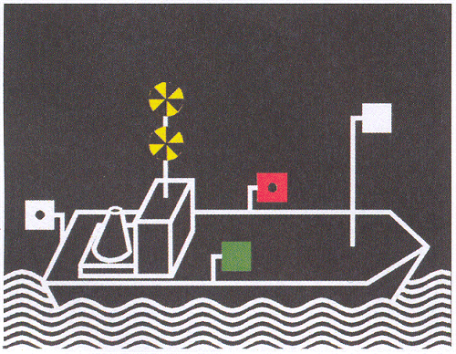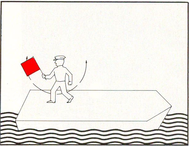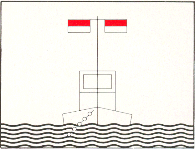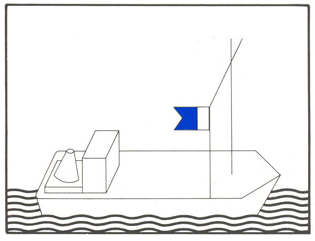 [iv]) Bij een samenstel moet het geluidssein slechts worden gegeven door het schip aan boord waarvan zich de schipper van het samenstel bevindt. (art. 6.32, lid 6 en art. 6.33, lid 1).