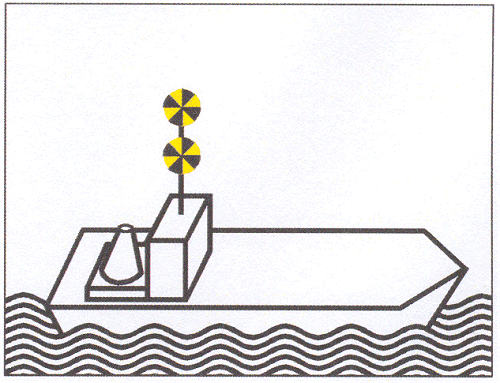 Tijdens de vaart mag de lading het vrije uitzicht niet meer beperken dan tot 350 m voor het schip of het samenstel.