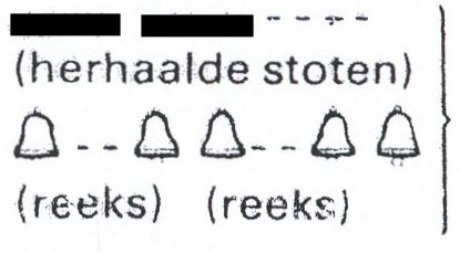 8°. reeks zeer korte stoten: reeks van tenminste 6 stoten, elk durende ongeveer ¼ seconde; de tijdruimte tussen de opeenvolgende stoten moet ongeveer ¼ seconde bedragen;