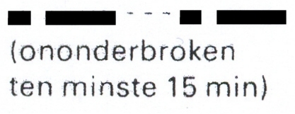 b. lange stoot: geluidssein durende ongeveer 4 seconden; de tijdruimte tussen twee opeenvolgende stoten moet ongeveer 1 seconde bedragen;
