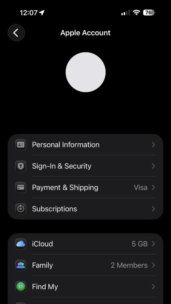 To do this, launch the general settings app of your iPhone or iPad (that gray icon with gears). At the top you will see your own name, together with a photo. Click on that.