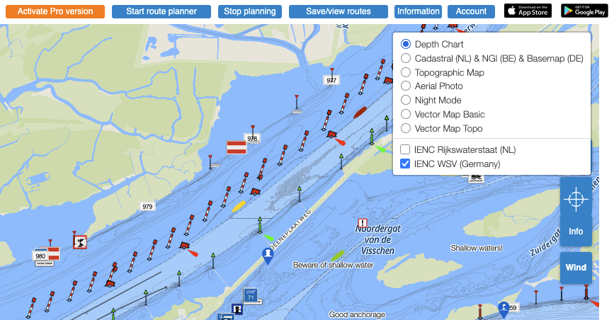 watermaplive.net has now been expanded with the Inland ENC navigation maps from Rijkswaterstaat. They contain a lot of detail about the water. You can easily turn this on as an extra map layer. That's how it works.